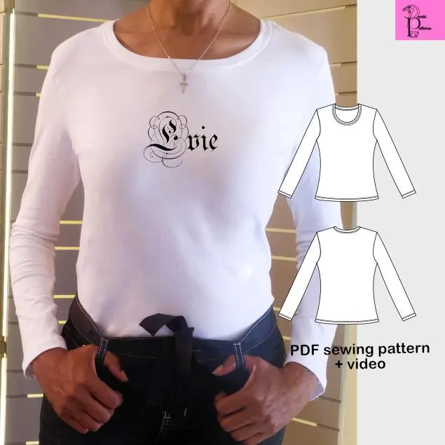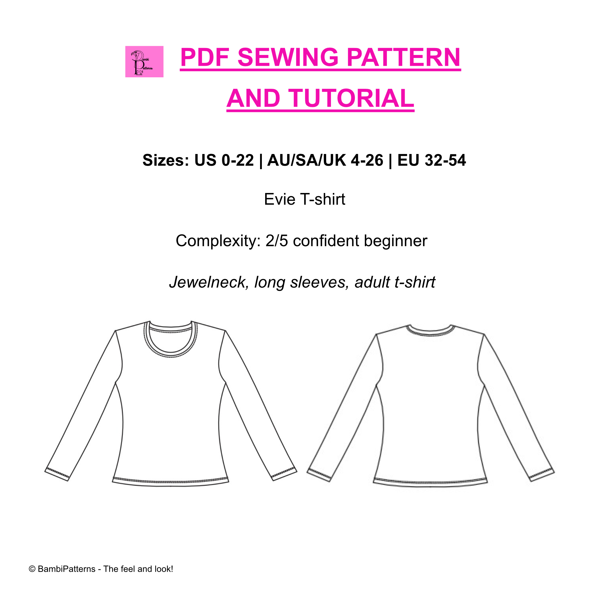 “Watch our full sew-along tutorial for the Evie Slim Fit Long Sleeve T-Shirt Sewing Pattern – Jewel Neck (XS–2XL).”